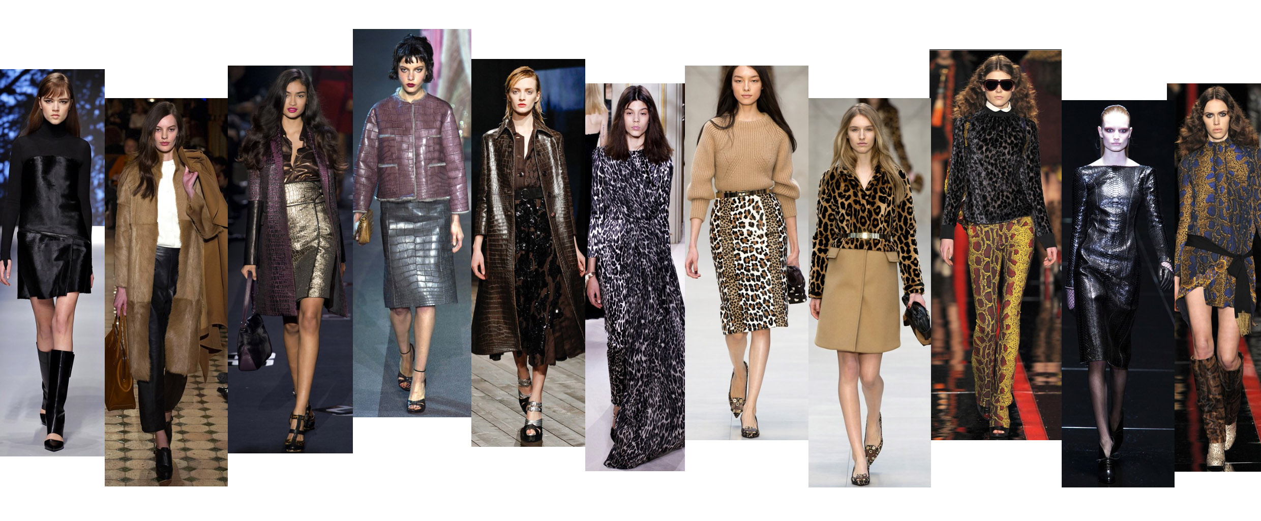 Whether you love leopard, snake, croc or pony, designers have embraced all hides and exotic skins this season! The catwalks were awash with animal prints and patterns, adding plenty of personality to an outfit. If head to toe animal print is not for you, make your statement with belts, bags and shoes. From DVF, Burberry Prorsum, Moschino Cheap and Chic, Hermes, Victoria Beckham to Louis Vuitton, Prada and Just Cavalli, you are in very good company!