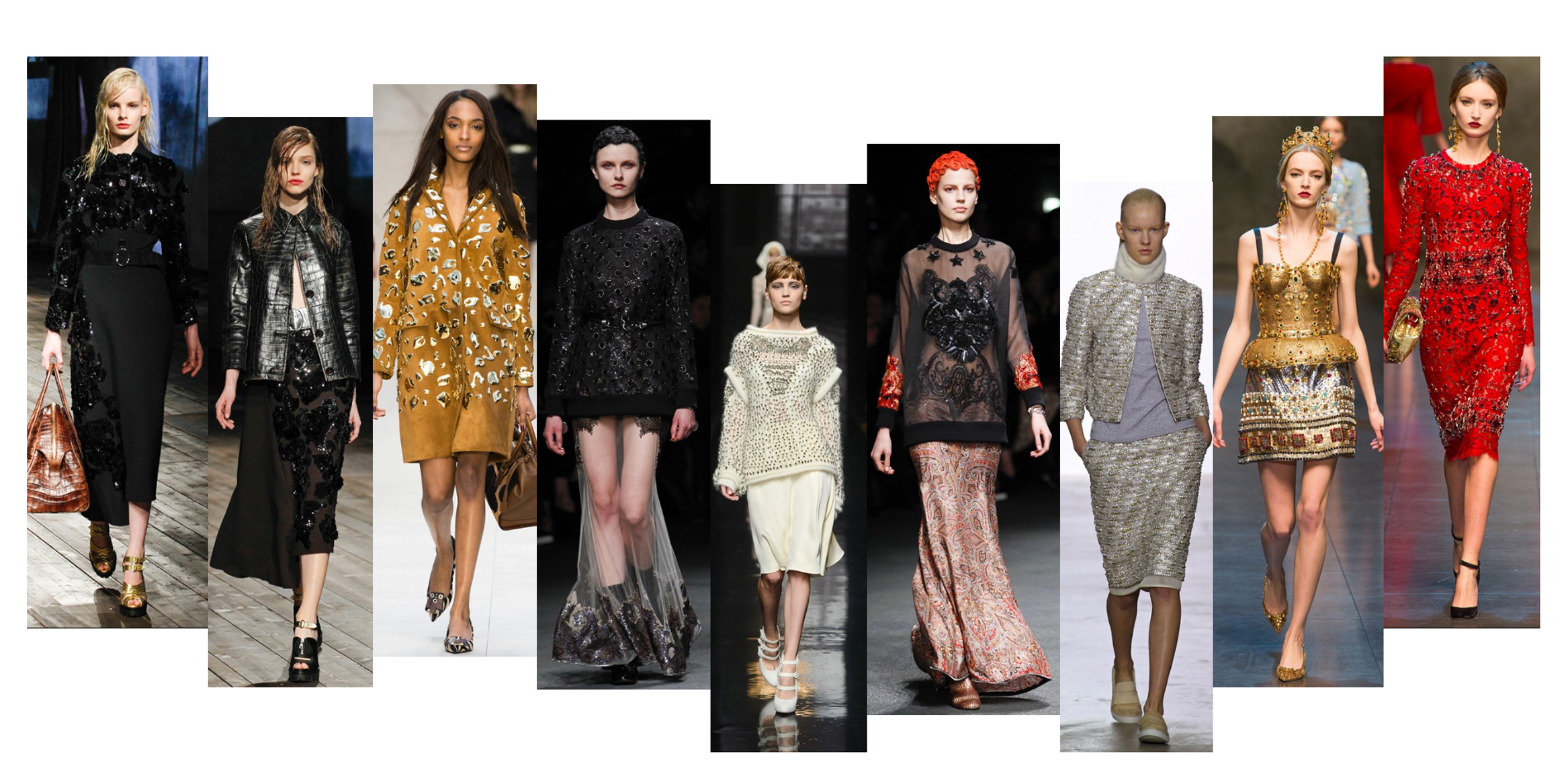 We all love a little sparkle in our lives and this winter we are sure to shine! However, this season there is a certain subtlety to add to the mix, with delicate gem-work scattered across casual clothing, making this trend daytime approved. The craftsmanship and luxury is embedded in the embellishment rather than the clothing, as demonstrated by Prada, Giambattista Valli, Louis Vuitton and Dries Vannoten.