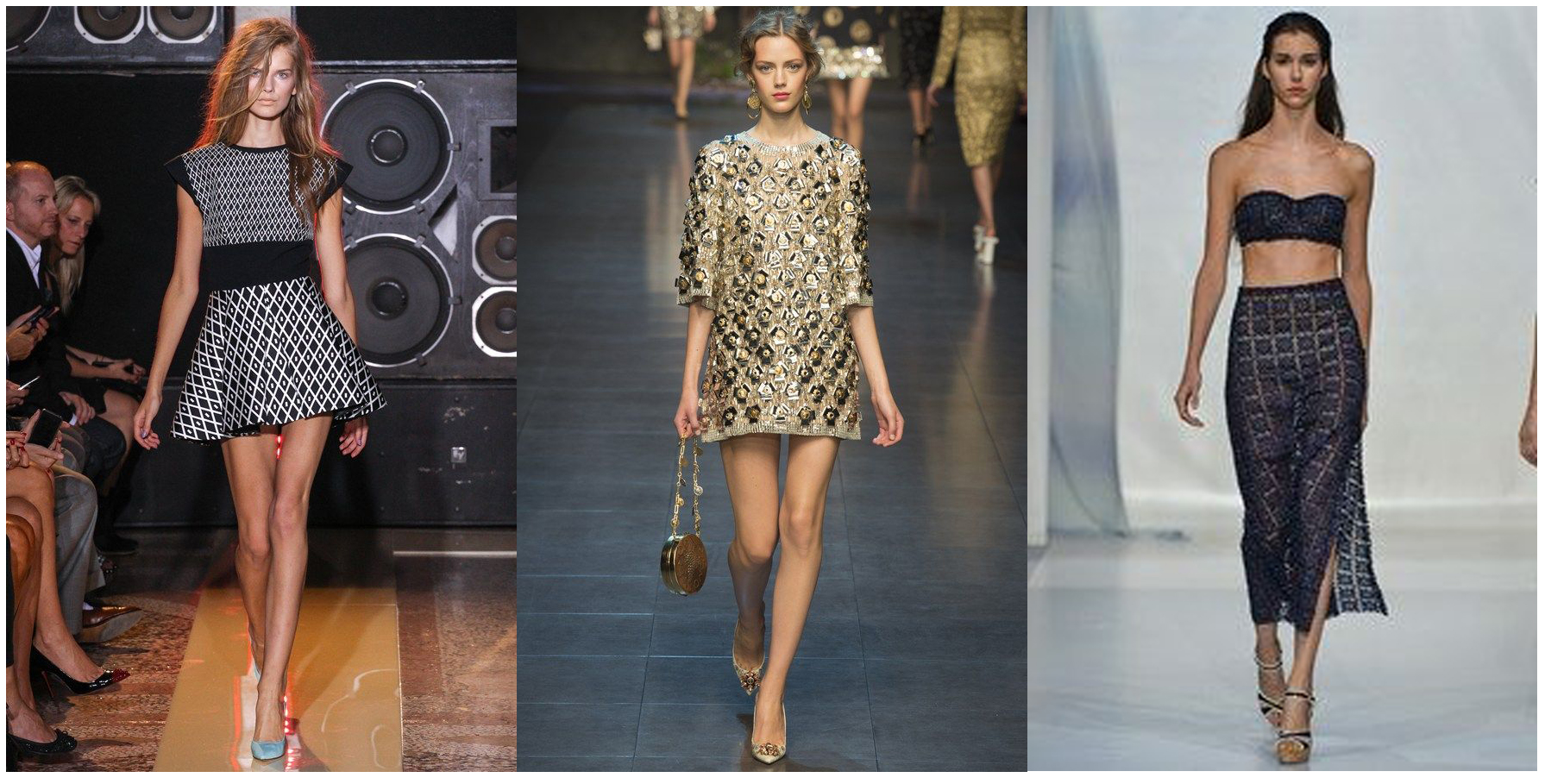 Dolce & Gabbana presented their collection featuring golden coin motifs on the majority of their designs in numerous imaginative formulas, including large print designs, creative chain belts and suspended hoop earrings – they would definitely add a jingle to your step! Logo’s also featured regularly on the catwalk, with Pucci, Versace and Missoni all exploring this idea. Although the pastel shades were still making an appearance, the darker, more opulent shades were dominant, with heavier fabrics than we have seen over the last couple of weeks, at New York and London.