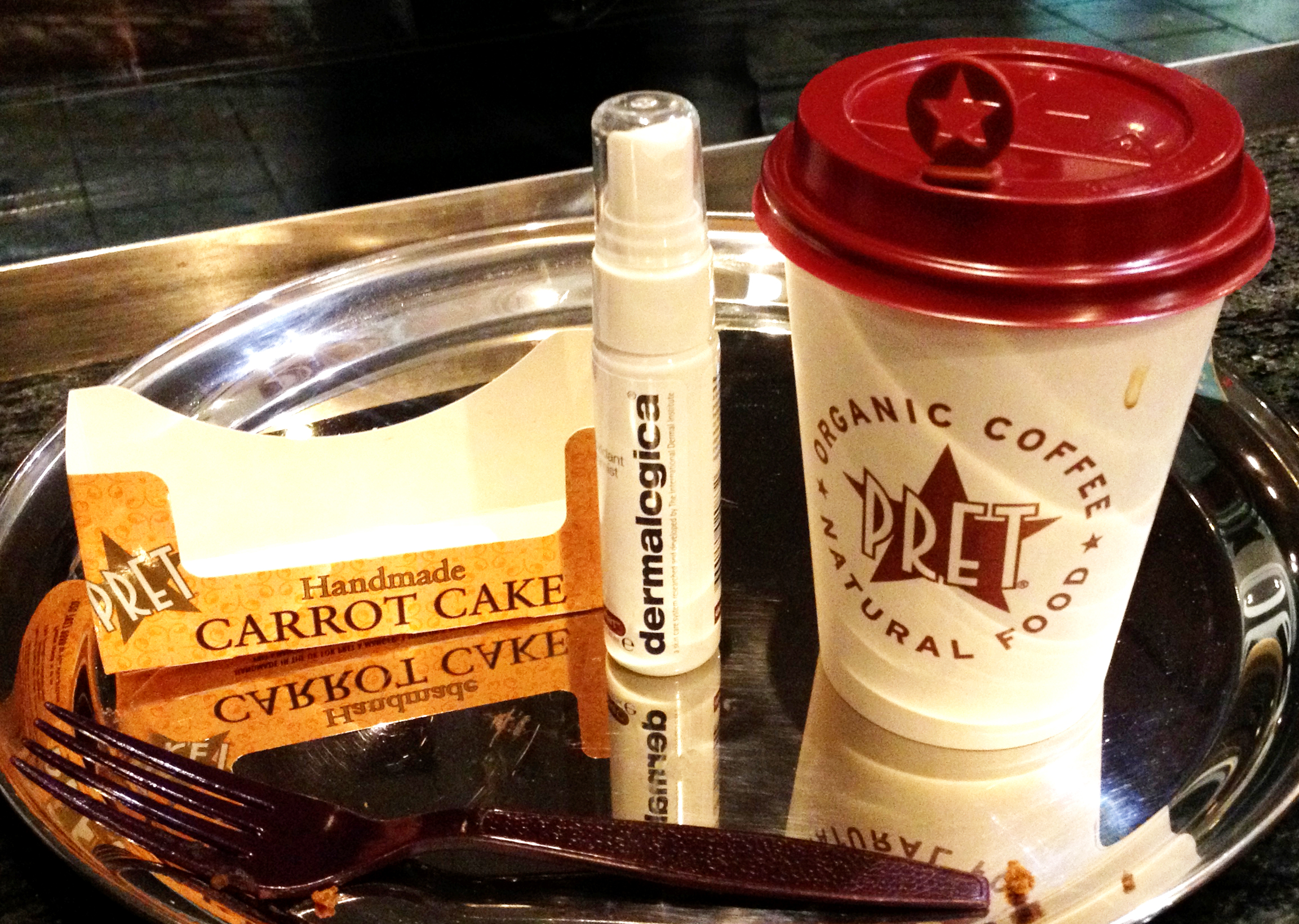 I decide to continue the indulgence, get shelter from the rain and grab an Earl Grey and a slice of carrot cake. YUM!