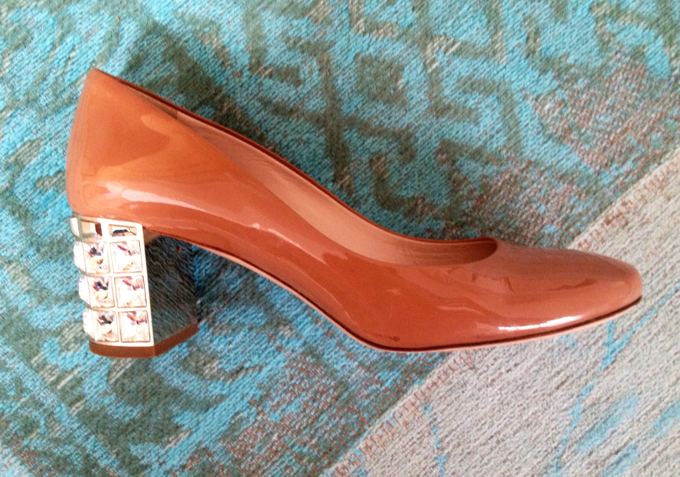 Much more demure and classy are these nude patent heels with fantastic crystal embellished heels. On several occasions I’ve been stopped by random strangers and asked where these little beauties are from.
