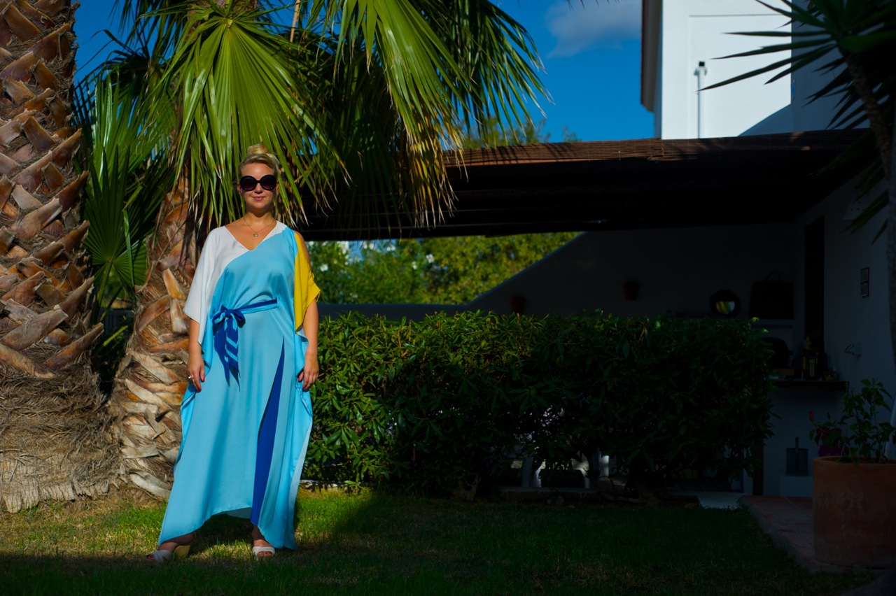 Tara wears kaftan by Tallulah & Hope