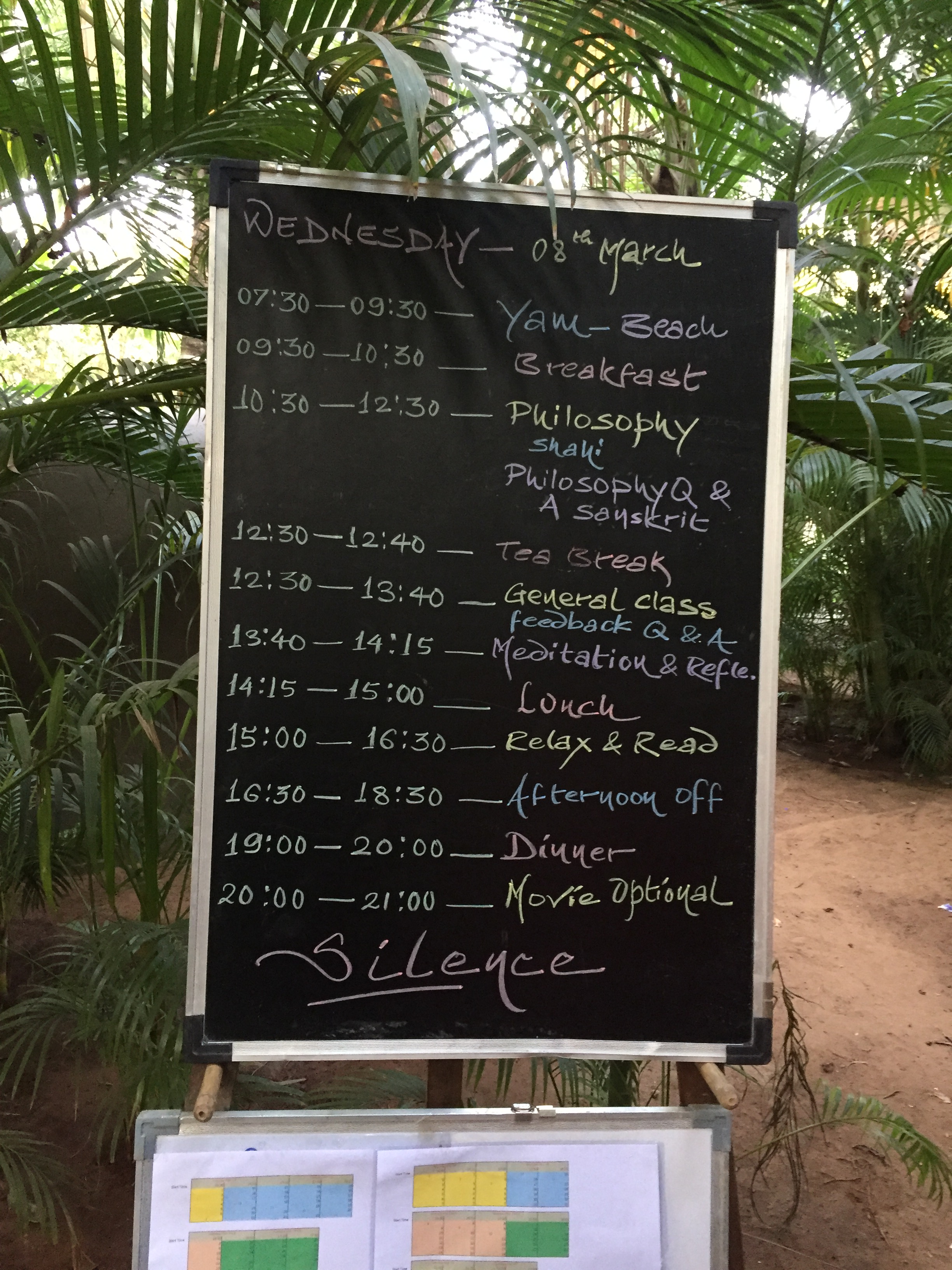 Each day we would eagerly wait for the schedule to be written on the black board. There are four yoga shala’s in constant use. Whilst our group was 27, there were other retreats happening at the same time, so I imagine the shala schedule shuffle was a challenge for the co-ordinators and at times the black board would magically change throughout the day. For some reason you just end up staring at this board repeatedly all day whether it be of a photo on your phone or the 3D master piece!