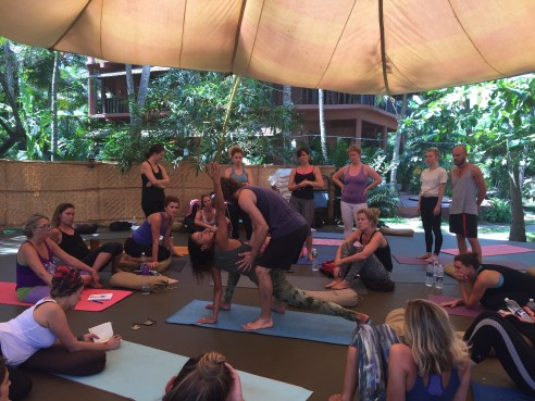 The structure of the course, gets you teaching small things from day two. So they ease you in with bite-sized doses. Naturally we felt nervous to teach, adjust and massage for the first time. In week three we taught a 20 minute class. I felt ecstatic afterwards, I loved the experience!
